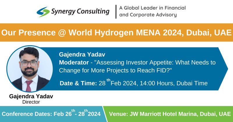 Gajendra Yadav, Director at Synergy Consulting, Inc., is the moderator on the panel discussion on “Assessing Investor Appetite: What Needs to Change for More Projects to Reach FID?”, to be held at the World Hydrogen MENA 2024 from 28 Feb 2024 in JW Marriott Hotel Marina, Dubai, UAE.