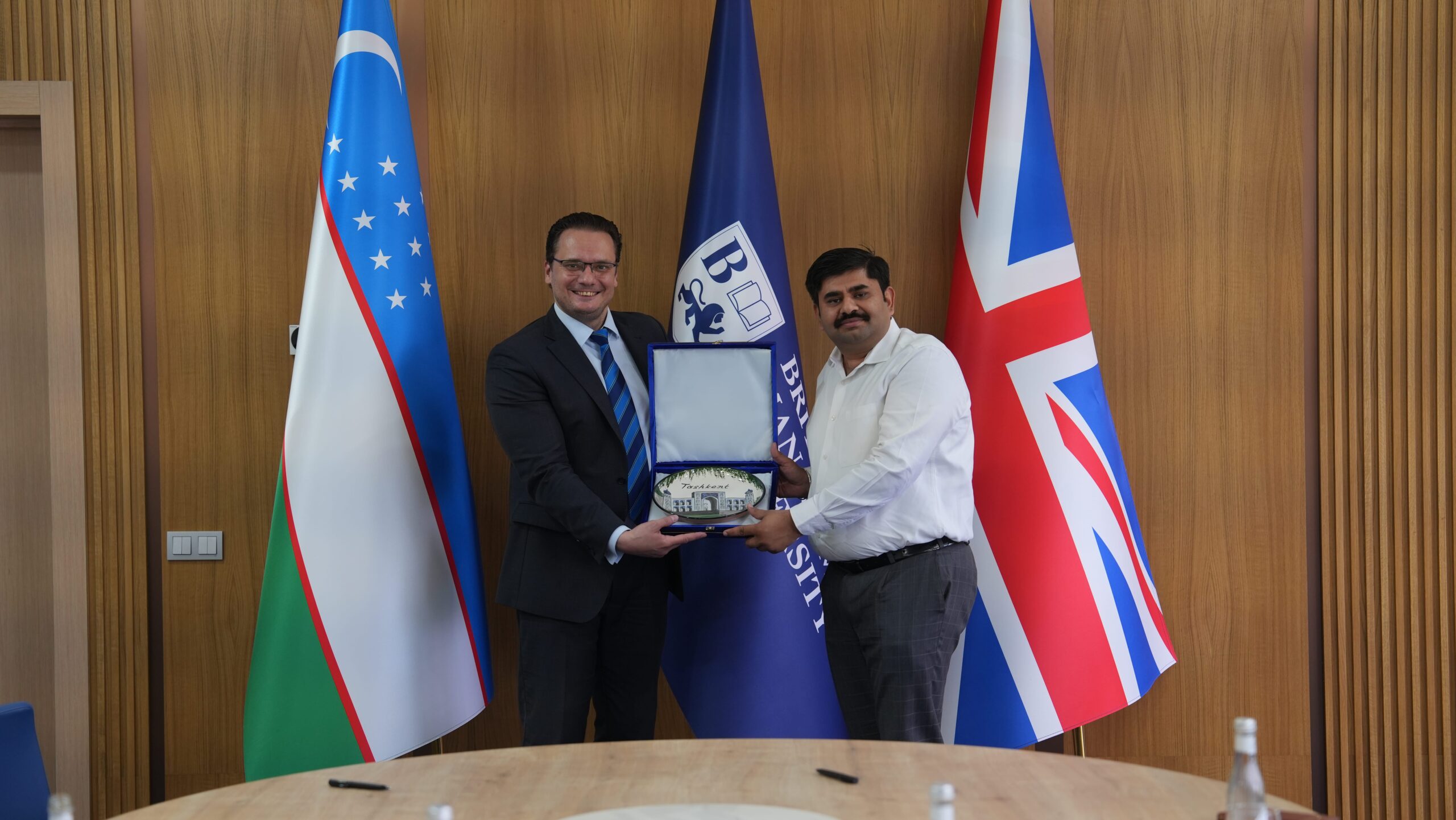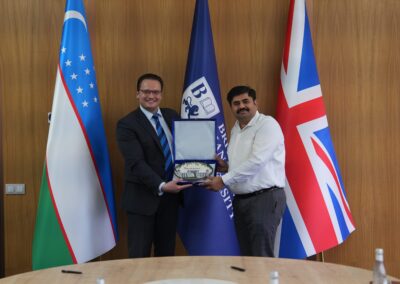 On April 28th, our management team members, Partner Ankit Chaturvedi and CIS Regional Director Bakhrom Abdukadirov, along with Associate Director of HR, Dr. Mohit Sharma were hosted by the Leadership of the British Management University, including Rector Yuri Loktinov and Vice Rector Lionel Hunderson, to formally sign the MoU.