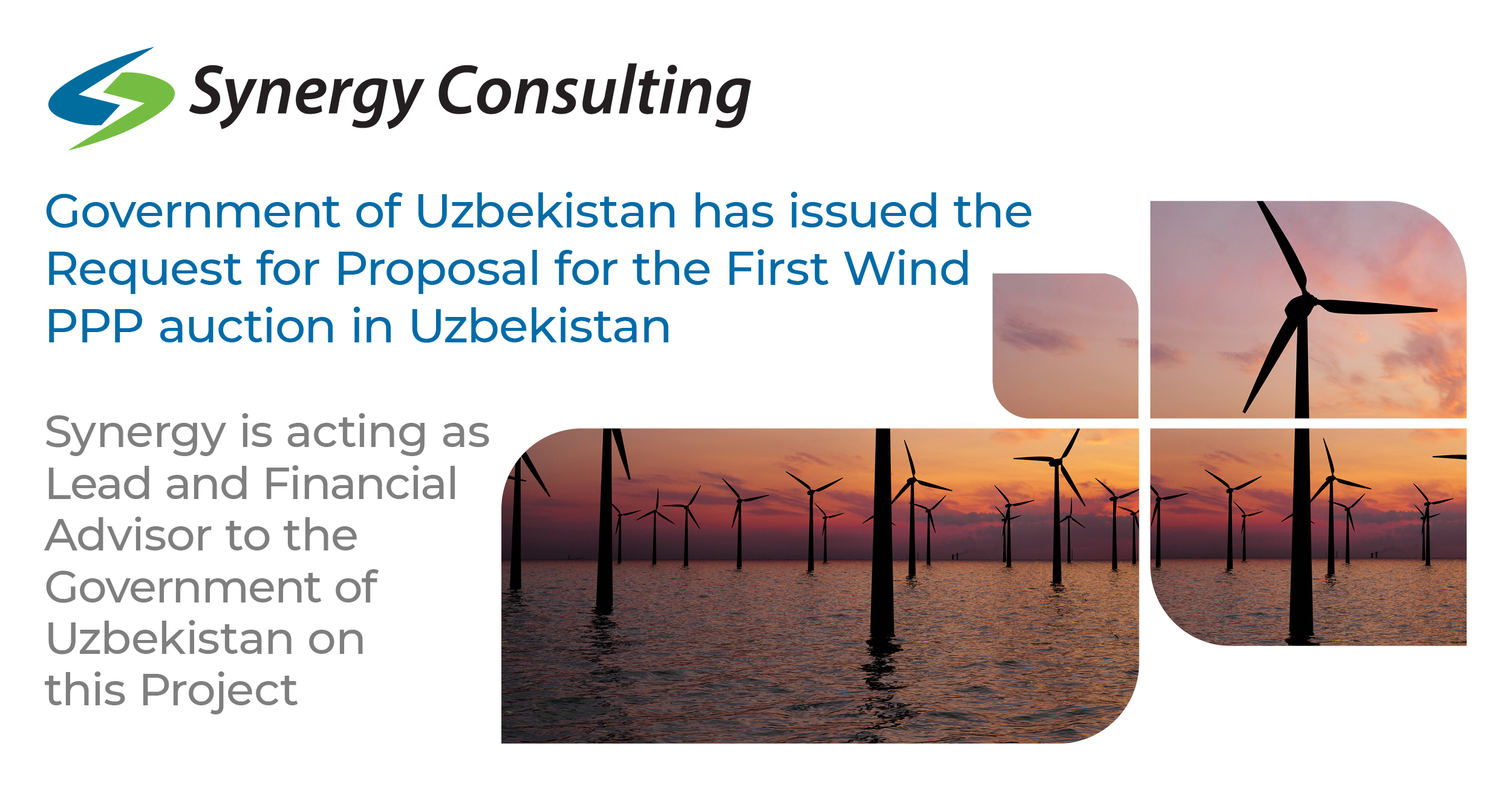 Synergy Consulting (as the lead and financial advisor) along with Dentons (as legal advisor), and Gopa Intec and Juru Energy (as technical advisors) are advising the Government of Uzbekistan on the project. This Project is the first phase of the EBRD’s 1GW wind power project development program.