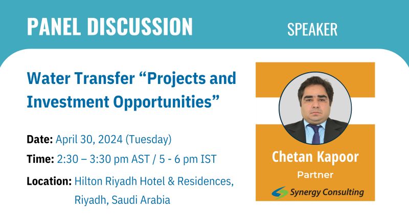 Chetan Kapoor, Partner at Synergy Consulting, Inc. is a distinguished speaker representing Synergy at the Saudi Water Forum (SWF) 2024 being scheduled for Tuesday, April 30, 2024 at Hilton Riyadh Hotel & Residences, Riyadh, Saudi Arabia.