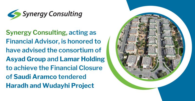 Synergy Consulting, Inc., acting as Financial Advisor, is honored to have advised the Consortium of Asyad Group and Lamar Holding to achieve the Financial Closure of Haradh and Wudayhi (H&W) Project.