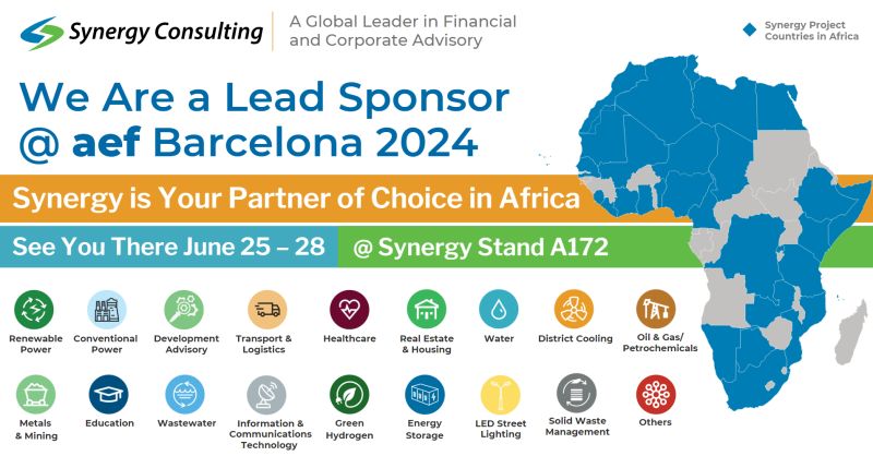Synergy Consulting, Inc. is delighted to be a Lead Sponsor of Africa Energy Forum 2024 (aef) in Barcelona, Spain. Synergy Consulting has been sponsoring the aef past 9 years. We look forward to meeting the energy stakeholders working towards the development of Energy Sector in Africa.