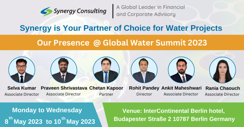 Synergy is excited to participate in this international summit and looks forward to the knowledge exchange through meeting clients, advisors, and affiliates during the event to discuss the latest trends in the water sector.